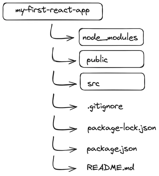 When you open your project, you’ll find that React has scaffolded a bunch of files and folders for you. Here’s a basic breakdown: